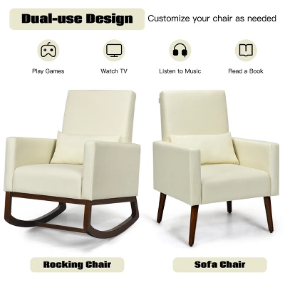 - 2 types of wooden legs help it transform it into a rocking chair or a sofa chair.
