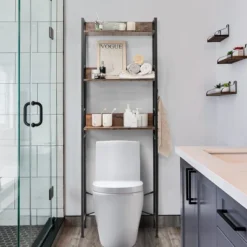 Costway 3-Tier Over-The-Toilet Storage Rack Bathroom Organizer Space Saver Rustic Brown