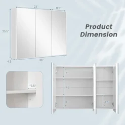 Costway 36″ Wide Wall Mount Mirrored Bathroom Medicine Cabinet Organizer Mirror Door