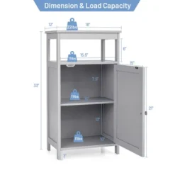 Bathroom Wooden Floor Cabinet Multifunction Storage Rack Organizer Stand Grey/White