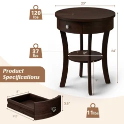 Costway 2 PCS 2-tier Side End Sofa Table Round Nightstand Bedroom Living Room White/Espresso