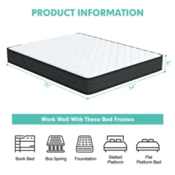 Costway 10” Jacquard Hybrid Mattress Plush Gel Infused Memory Foam Bamboo Charcoal QueenFull
