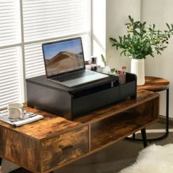 Costway Industrial Vanity Table With 3-Height Adjustable Mirror Storage Bag Large Drawer