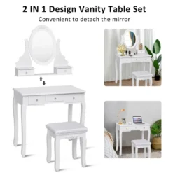 Costway Kid Vanity Table Set With Tri-folding Mirror 2-in-1 Makeup Dressing Table Stool Set