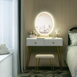 Costway Vanity Table 3 Color Lighting Modes MakeUp Stool Jewelry