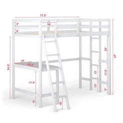 Costway Twin Loft Bed Frame W/Desk Angled And Built-in Ladder Solid Wooden Frame WhiteGreyExpresso
