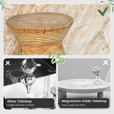 - Stylish Hourglass Shape: Our outdoor side table combines stylish hourglass shape appearance with a unique faux stump design, adding a natural and charming touch to your living room or patio. Its hourglass shape adds a distinct and sophisticated look to your outdoor space, making it a focal point of conversation.