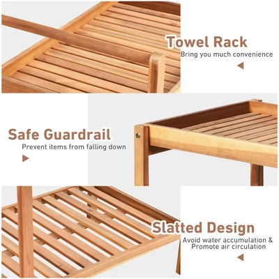 This practical serving cart is a perfect choice for your afternoon tea time with your family or guests. The kitchen trolley cart is made of high-quality acacia wood, which ensures the durability and weather resistance. Meanwhile, the sturdy frame structure enhances stability to prevent easy shaking or deformation. And the serving cart has 2-tier shelves with slat design, which offers ample space for you to store or prepare your items. What’s more, you can move and carry it effortlessly thanks to wheels and handle. This rustic kitchen cart will be a great addition in your home or outdoor space. You can use it to hold your food, fruits, drinks, or other daily supplies in your needs. Got it today, do not miss it!
