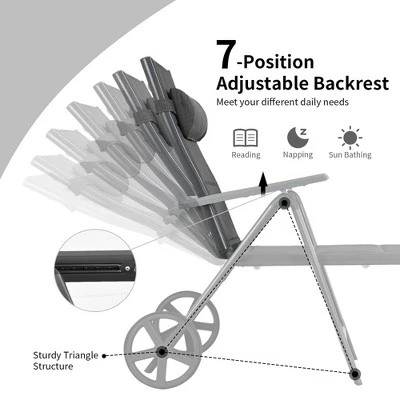 - 7 Adjustable Positions: The backrest can be adjusted into 7 positions, satisfying your multiple daily needs. You can adjust by lifting up the armrests of both sides. And the lock under the armrests will fix the backrest in place. With this lounge chair, you can do various activities, such as reading, fishing and sunbathing.