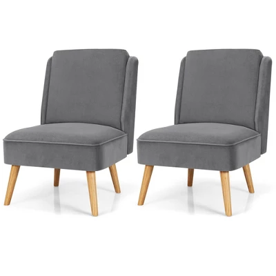 Costway 2PCS Velvet Accent Chair Single Sofa Chair Leisure Chair With Wood Frame