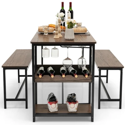 - Versatile Use: The table and 2 benches for 4 persons can not only be used as a kitchen dining room table set, but also can be a perfect choice for your working, reading, studying, gaming, drinking beers, enjoying leisure time with friends, or enjoying breakfast. It is suitable for the office, home, terrace, bistro, coffee shop, restaurant, and more.