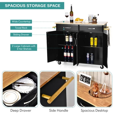 Costway 4-Door Rolling Kitchen Island Cart Buffet Cabinet W/ Towel Racks Drawers WhiteBlack