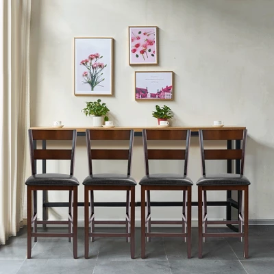 Are you looking for a piece of furniture that is functional and decorative? Our solid wood bar chair set highlights the feel of practical and fashionable. Selected high quality rubber wood with exquisite technology, this chair set is firm and durable. And each of our wooden bar chairs can load up to 300 lbs, safely and stably. Ergonomic backrest, soft padded seat and humanized footrest provide you with a comfortable long-time sitting experience. What’s more, widen PU seat with armless design allows you to change sitting postures flexibly. In addition, modern style makes this bar chair set suitable for different decoration styles.