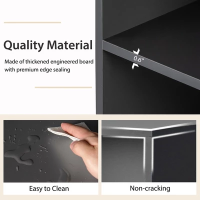 - High Quality Material & Strong Connection: Our storage shelf is made of high quality MDF for great strength. The stable construction provides a total weight capacity of up to 200 lbs. The surface of the shelf has a non-toxic paint layer, which makes the surface of the shelf smooth and waterproof. You can easily clean it with a wet towel.