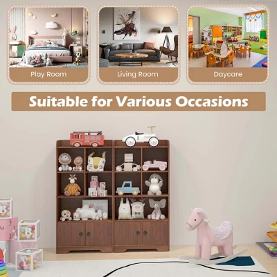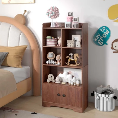 With multiple storage options, including a top shelf, several open compartments and a 2-door cabinet, the bookcase can keep books, ornaments and other sundries well organized. You can put it in your living room as a decorative display shelf, in the study room as a bookshelf or in the kid’s room as a toy storage organizer. What’s more, the cabinet is a sturdy and durable unit that will accompany you for a long time. There are also some humanized designs for a better using experience, such as the convenient round knob, magnetic door catchers round corners and smooth surface.
