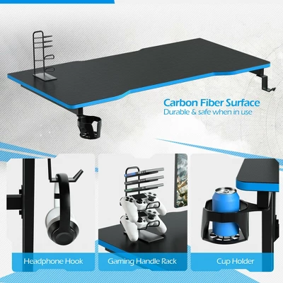 Costway 47.5” Gaming Desk Z-Shaped Computer Office Table W/Gaming Handle Rack Red/Blue