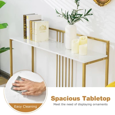 - Modern &Stylish Appearance: The stylish entryway table itself is a real eye-catcher and an embodiment of modern aesthetics. The white tabletop with marble texture goes well with the sleek golden frame, bringing a charm of luxury. Therefore, it is a highlight point among the home decorations.