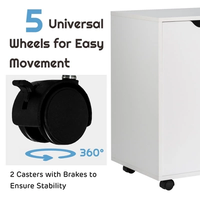 Crafted from durable engineered wood, this cabinet ensures a long service life. The spacious top can hold your printer or scanner perfectly. A side cabinet with a door is suitable for storing books, folders or crafts. In addition, five large drawers provide ample storage for your calculator, post-it notes and other small items. Smooth sliding rails and concave handles make items easy to access. Four 360 degree universal wheels allow you to move the cabinet easily. It is also worth mentioning that two front wheels with brakes can effectively increase stability to prevent tipping over.