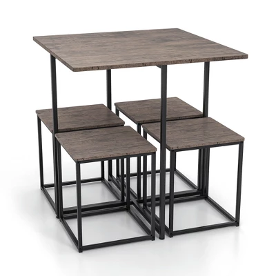 - Space Saving Design: Thanks to the clever cross-shaped design of the compact 31.5” x 31.5” x 31” dining table, the four 14” x 14” x 17.5” stools can easily be placed under the table when the meal is over, thus greatly maximum the space utilization. So, this 5 pieces table and chair set is a perfect choice for small spaces!