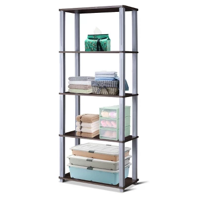 This compact and stylish 5-tier shelf will surely be your great storage helper.PVC veneered MDF shelves are durable and easy to clean, and also can withstand heavy load. Whatever you need to store, its super large space can meet your needs, and your messy room will change into a clean and tidy one soon because of it . No matter in your living room, bedroom, or kitchen, even in your garage, it can help you a lot.If you just need a storage shelf, then add this one to your cart soon!