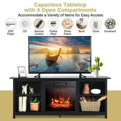 Render your living room warmer with this fireplace TV stand! With a 3-level adjustable electric fireplace insert, you can customize the flame brightness based on your preference. Through the control panel and handy remote (the maximum available distance is 26 ft), you can control the fireplace easily. In addition, the heat can be controlled individually so that you can appreciate the 3D realistic flame without heat on. The practical TV stand holds TVs up to 65” and has capacious storage space for plenty of objects, which will keep everything organized. It is not so hard for you to install the TV stand with a detailed user’s manual. And clean it with cloth for convenience.