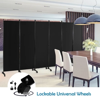 Costway 6-Panel Folding Room Divider 6FT Rolling Privacy Screen With Lockable Wheels Black/Brown/Grey/White