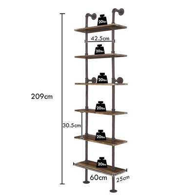 - 1 x 6-Tier Industrial Pipe Wall Shelf