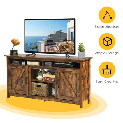 - Ample Storage Space: The tabletop is spacious enough to hold a 65-inch TV and some decorations. The open compartments and shelves are ideal for placing DVD players, speakers, set-top boxes, and other media or gaming devices. Besides, two side cabinets with doors provide additional storage space for books, crafts and sundries.