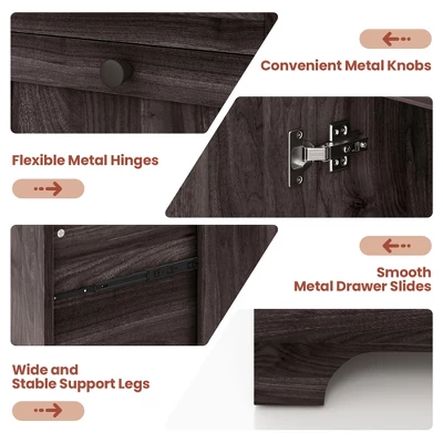 Are you looking for a desk that is both practical and stylish to meet your diverse needs? Well, why not try this one! Designed with a spacious desktop, 2 large drawers, a door cabinet and a slide-out keyboard tray, this L-shaped corner desk offers ample storage space to well organize your office supplies, ideal for any corner of your room, making the most of your limited space, providing you with more studying and working areas. In addition, convenient metal knobs and smooth metal drawer slides make it easy for you to open and close the drawers.Note: large-load items are suggested to be put on the side of tabletop, which provides higher support, better not at the center.
