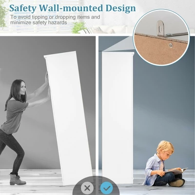 - Safe Wall-mounting Accessories: You might have some doubts about the stability of the product, which is up to 70 inches tall. Allowing for that, we especially equip the tall cabinet with anti-tipping wall-mounting accessories, with which you can secure the product to the wall so you don’t have to worry about your family being hurt by a falling cabinet.