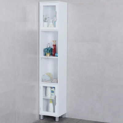 The storage cabinet makes an ideal storage or display solution for your home. It is an ideal combination of elegance and functionality. The upper and lower layers of the toughened glass door cabinet design provides a clear view into the cabinet. The two handles on the door allow for easy open and close operation. The huge capacity allows you to place or store any items of your bathroom supplies, such as books, dinnerware, towel and more. This cabinet is sturdy and reliable, can be used for long-term. Simple installation is required for the cabinet.