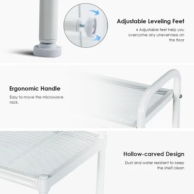 - 『Ample Storage Space』: With 3 shelves and a 2-door storage cabinet, this microwave oven stand provides large storage room for you, well accommodates your microwave oven, dishes, and other items, makes your kitchen neat and tidy.