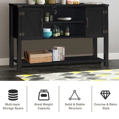 - Modern Elegant Appearance: The concise rectangular console table in classic color designed with clean lines and smooth surface that presenting an elegant feeling. The barn-style side doors decorated with metal hinge and handle will match your other furniture and decorative style of interior space.