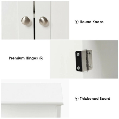Divided into 3 parts, the cabinet can be used to store and classify lots of items. It is great to store some things in open part for convenient taking. 2 drawers can be adjusted in different positions according to your needs. And the lower cabinet is divided into two layers with a removable shelf. Made of premium density board, the cabinet is sturdy and durable foe long time using. The surface of cabinet is waterproof and scratch-resistant with coating. In addition, the door is equipped with magnetic button to prevent items from falling and round handle for opening and closing easily. This multipurpose cabinet not only can be used in bathroom, but also can be placed in your bedroom, living room and kitchen to be a free-standing organizer.