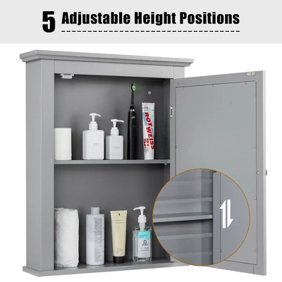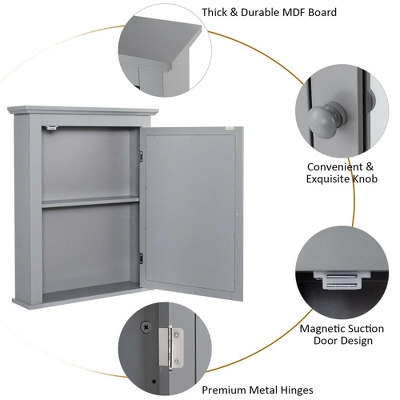 The wall mounted mirror cabinet which combines modern style and practicability is ideal to use in your bathroom. With white finish and elegant appearance, this mirror cabinet will well match with your furniture in your home. It can perfectly blend in various decoration styles and leave your guests a deep impression. Featuring 2-tire inner space with mirror, this cabinet will add other storage space for your room. There is sufficient space to store and organize your linens, toiletries, and bath essentials. And the design of door not only can hide the item but also keep moisture and dust out. Our cabinet made of thick density board and painted with smooth paint which ensures durableness and sturdiness of the cabinet. Therefore, this mirror cabinet can provide long time service for your family.