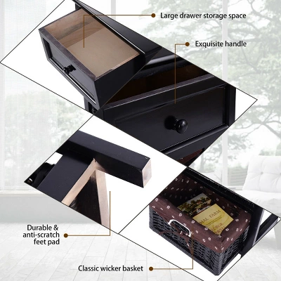 our black Nightstand Is An Easy Addition To Your Bedside Decor. Drawer And Open Shelf Provide Storage For Nighttime Essentials. With two withdrawable storage box, it is easy and convenient to storage small objects. Build with solid wood construction, this 3 layer white night stand is durable and sturdy. While A Compact Design Fits Into Any Space. Top With Books And A Vintage-Inspired Clock To Add Some Stylish Flair. Do not hesitate to buy one!