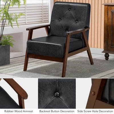 6” cushion made of PU leather and soft sponge provides you with super comfort. Ergonomic backrest, safety armrest, spacious seat and 100° backrest angle enable it to well support your back, waist, hip, arms and legs. With our single chair, you can fully relax yourself in your living room, reception room, office and study. Besides, it’s also designed with solid A-shaped frame, reinforced design and rubber wood legs, allowing for utmost sturdiness. It can support up to 286 lbs. Moreover, backrest button decoration and side screw hole decoration make it a real eye-catcher in your home or office. It’s easy to assemble and maintain in a few minutes.
