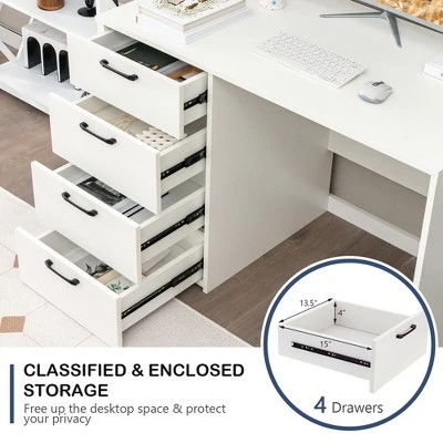 - Classified & Enclosed Storage: In addition to the large tabletop,the home office desk is also equipped with 4 drawers to free up the desktop space & protect your privacy. Each drawer measures 13.5” x 15” x 4” (L x W x H),providing ample space for files,staplers,calculators,and keeping them in a well organized manner.