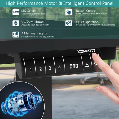 - High Quality Motor & Intelligent Controller: There is a smart control panel to help you adjust the desk height from 28”- 46” at the speed of 1”/second. 4 preset buttons are designed for memorizing desk heights for convenient instant adjustment. High quality motor will not create much noise (under 50 db) while running, causing less disturbance to others.