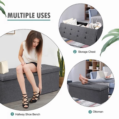 - Comfortable Sitting Experience: In addition to being a clutter organizer to keep the space tidy, the storage chest can also be used as a bench or ottoman to relieve your fatigue. The soft fabric covering and thick foam-filled upholstered seat will bring you with a comfortable sitting feeling.