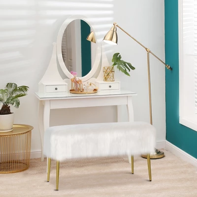 - Vanity Bench for Visual Enjoyment: This vanity bench features a furry faux fur seat and golden legs, striking the perfect balance between elegance and simplicity. It is a visual enjoyment for any room in your home, giving in the sophisticated and modern decoration.