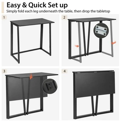 - Easy & Quick Set up: No Assembly Required. What you need to do is simply fold each leg underneath the table, then drop the tabletop. And the smooth surface is easy to clean and maintain, just occasionally wipe it with a wet cloth.