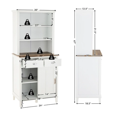 - Clutter-free Storage Solution: Featuring open shelf, 2 practical drawers and 2-door cabinet, this kitchen buffet provides ample storage space for all sorts of kitchen supplies. Additionally, the large countertop facilitates the placement of microwave and other home appliances, helping you keep a neat kitchen environment.