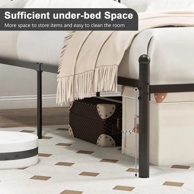- Sufficient Under-bed Space: 12.5” under-bed storage space facilitates the placement of suitcase, storage box and other idle things, which can well suit your daily needs. The clearance from ground to bed also leaves enough cleaning space for sweeping machine.