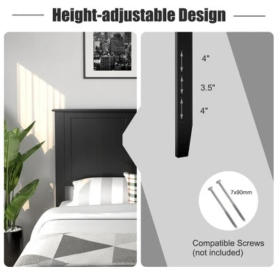 Featuring a sturdy pine wood and plywood construction, the flat panel headboard is rather durable and sturdy for years of use. Meanwhile, the smooth surface and round corners leave no worry about accidental injuries during assembly and use. By the way, the headboard is provided with complete accessories and easy-to-understand instructions for you to put it together with ease. And with pre-drilled holes, you’ll find it easy to fix the headboard to a standard full size bed frame. Best of all, the bed backboard can be adjusted up and down by 4”, so you can customize an ideal height for your bed.