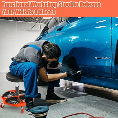 - Flexible to Use, Cozy to Sit: With a 360° rotatable seat and 4 universal casters, this rolling mechanic stool allows you to go wherever you want, making repairing no more restriction. Besides, the 2 inches soft padded seat provides you with a soft touch for a comfortable sitting experience.