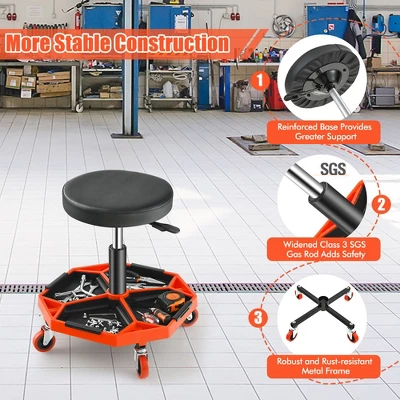 - Keep Tools Close to Hand: This adjustable roller seat features a tool tray with 4 removable chassis that allow you to fetch the needed tools with ease. And the magnetic quarter chassis will be the perfect space to store small tools to prevent them from being lost.