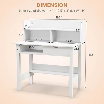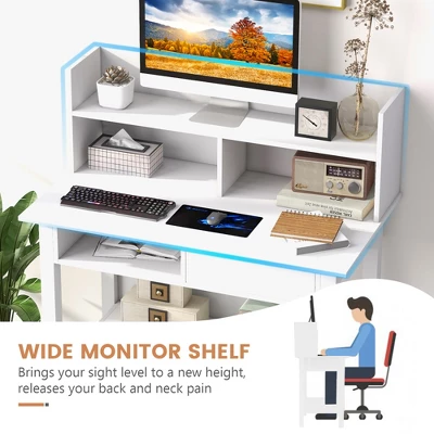 - Premium Desk with Ample Storage Space: Designed with 2-tier hutch and slide-out drawers, our computer desk functions well in providing ample space for sorted storage. And there is a baffle to prevent objects from falling. In addition, an open storage shelf under the desk offers additional storage space.