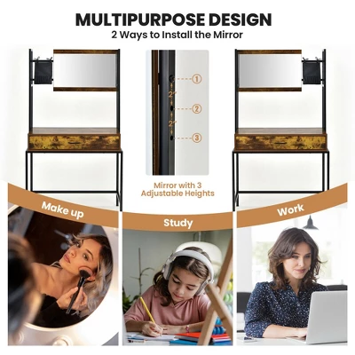 Costway Industrial Vanity Table With 3-Height Adjustable Mirror Storage Bag Large Drawer