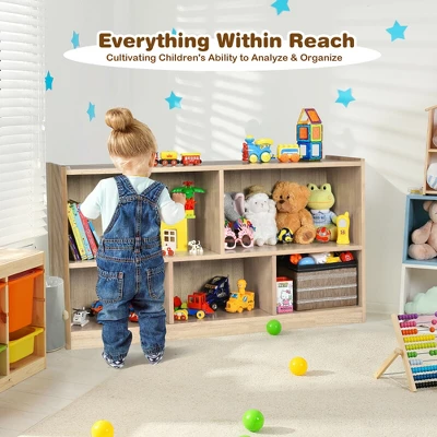 Costway Kids 5-Cube Storage Cabinet 2-Shelf Wood Bookcase Organizer Natural